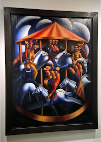 The installation is a metal representation of the multipanelled Ghent Alterpiece, original created by Hubert and Jan Van Eyck in the 15th Century, which was known as The Adoration of the Mystic Lamb. Reproduced with only the frame and without the folding panels, the work encourages spectators to glance through the windows into the cityscape.